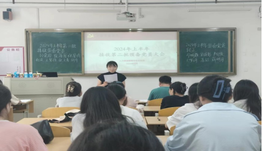 2024年6月24日下午1:00,管理学院人力资源管理学生党支部2024年上半年接收第二批预备党员大会在实训楼c111召开。管理学院党委副书记张增林、教师党员和支部全体党员参加会议。由人力资源管理学生党支部书记巩艳艳主持。