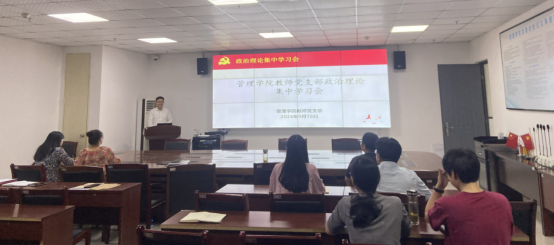 2024年9月18日,管理学院教师党支部召开政治理论集中学习会,会议由旅游管理教师党支部书记李龙主持,旅游管理教师党支部、工商管理教师党支部、管理科学与工程教师党支部全体党员教师参加了此次学习活动。