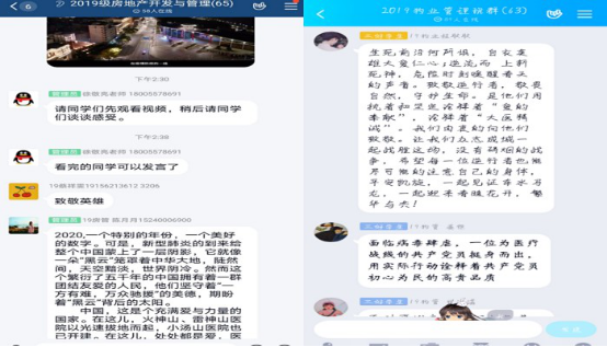 在突如其来的疫情的影响下,各大高校纷纷采取网络教学模式,同学们开始利用电脑、手机等进行云端学习。在此期间,为了实现对同学们的思想道德素质教育,加强同学们对疫情的认识,18物业管理、19房地产开发与经营、19物业管理班级于3月30日至4月1日陆续开展“感恩”的线上主题教育班会。班会由辅导员徐老师主持,全体同学在线积极参与。