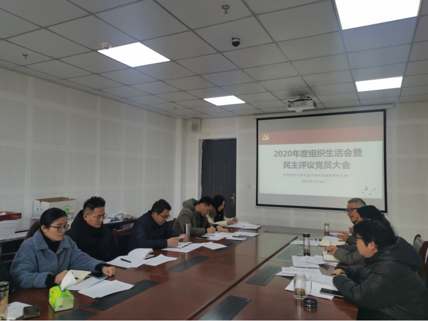 1月16日上午10:00,管理学院工程与房产物业管理教师党支部于在实训楼C楼310会议室召开了2020年度组织生活会暨民主评议党员大会。支部书记王淑霞主持,支部全体党员参加。
