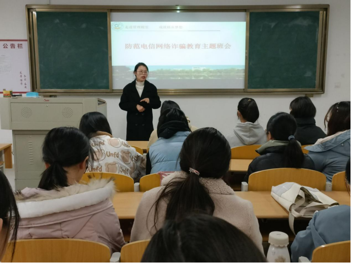 会上,王思惠领学了《宿州学院关于进一步加强防范电信网络新型诈骗宣传教育的通知》,指出如今网络诈骗案件层出不穷,大学生社会阅历较少,因此很多新型电信网络诈骗瞄准了大学生群体,普遍出现的诈骗类型为以“缴学费”为名的诈骗和冒充亲人、朋友求助的诈骗。王思惠告诉同学们一定要学会保护自己,遇到可能的电信网络诈骗陷阱要保持警惕,不轻易相信。