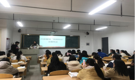 为了建设文明和谐的校园,打造良好的学习氛围,磨砺学生品格约束自身性格使其做一个自知自制的人,20级房地产开发与管理、20酒店管理1班、20工程管理、21房地产开发与管理班级于12月陆续在实训楼C105举办以遵守校规校纪为主题的班会。此次活动由辅导员孙杉和班长倪志成主持,全体同学参加了这次班会。