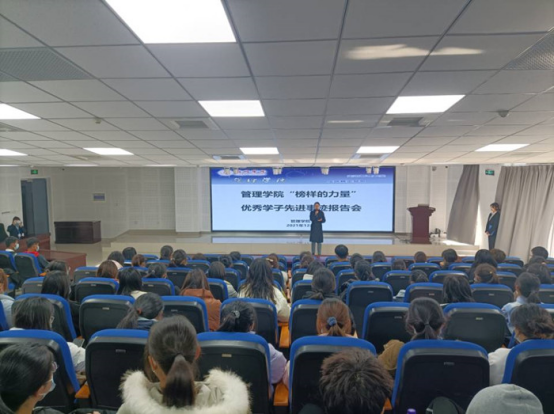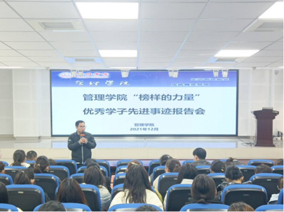 为推动管理学院学风建设,培养学生良好的学习习惯,形成积极主动的学习风气,引导学生知学好学,2021年12月10日,管理学院在实训楼C103召开“榜样的力量”2021年优秀学子先进事迹报告会。党委书记蔡若愚、党委副书记张增林及各班辅导员出席会议,会议由学生事务管理科负责人王思惠主持。