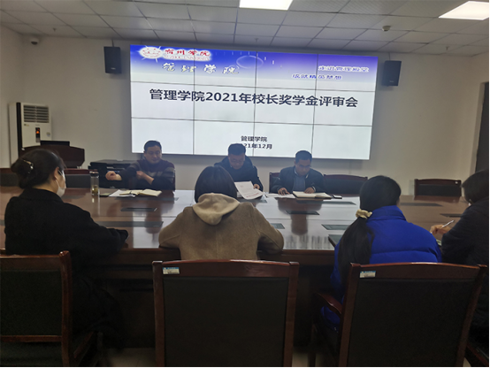 会上,蔡若愚依据学校校长奖学金评选标准,强调了校长奖学金评审工作重在调动学生积极性,培养学生对学院的热爱等方面的重要意义。其次,张增林对照校长奖学金评审条件在学习成绩、道德素养、社会实践、竞赛得奖、荣誉称号等方面对申报学生情况作了说明。最后,管理学院校长奖学金评审领导小组,本着“坚持标准,好中选优”的原则上报了奖学金评选名单,确定19旅游管理班杨静同学为管理学院校奖学金推荐人选,推荐名单将在学院宣传栏公示5个工作日,无异议后,将评审结果报至学生处。
