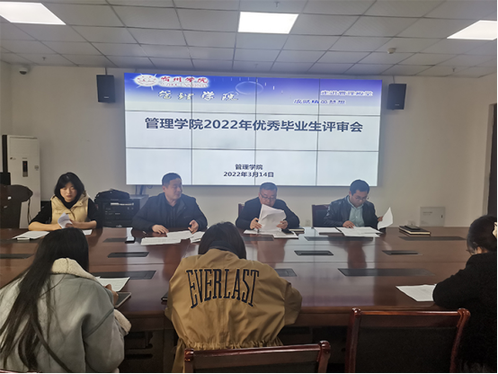 为激发学生学习热情,树立刻苦学习、诚实守信和积极向上的优秀毕业生形象,3月14日上午,管理学院在实习实训楼C301会议室召开2022年优秀毕业生评审会,学院院长韩传龙、副院长宋徽、党委副书记、纪委书记张增林及各班辅导员参加会议,会议由学院党委书记蔡若愚主持。