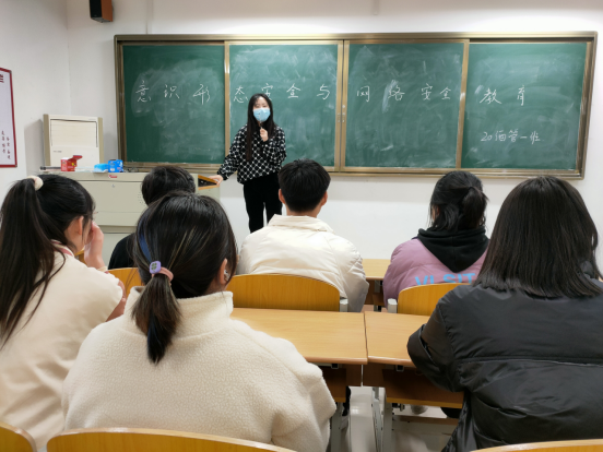 为了加强大学生意识形态安全教育的方式和手段,拓宽大学生意识形态安全教育的培育路径,从而激发大学生群体的内力觉醒,以期巩固和维护学校意识形态安全阵地,2月28日中午,由孙杉老师带领着20级酒店管理(对口)1班、20工程、20房管、21房管班级部分同学开展了此次班会活动。