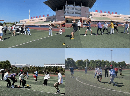 此次主题团建活动以素质拓展游戏展开。活动过程中,全体成员遵守规则、安全有序,积极参与到每项游戏中,在交流与游戏中展现自我,展现青春风采。公鸡下蛋暖场游戏后,现场气氛逐渐活跃。随后的游戏环节中考验的是团队的协作能力,尤其是夹球跑接力游戏,三人成队,单手持筷夹球,接力前行,每一位成员都是团队中不可分割的一部分。撕名牌、你的地盘我做主陆续开展,同学们的加油呐喊回荡在田径场。随着拔河比赛的开展与进行,同学们争先上阵,积极展现,团建活动在一片欢声笑语中落下帷幕。