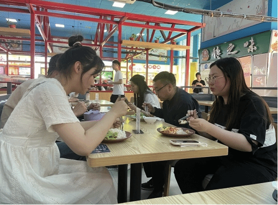 为了加强师生之间的日常交流,拉进师生距离,有效提高学生的生活质量,切实提供有效帮扶,5月5日中午,院党委书记蔡若愚走进餐厅与21级人管专升本一班的学生共进午餐。