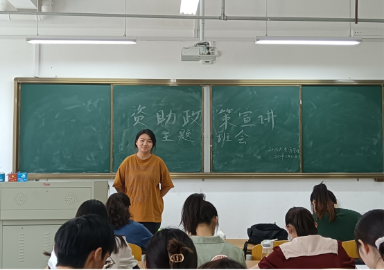 会上,杨景景对本次主题班会的活动流程、背景、目的和要求进行介绍并宣布班会正式开始。首先,她介绍了高等学校学生经济资助政策,从资助范围、资助标准、申请条件、申请时间、发放时间这五个方面依次进行了详细地讲解。接着,她介绍了国家奖学金和国家励志奖学金的申请标准、评审及发放相关程序,并系统地讲述了生源地信用助学贷款及还款流程及相关注意事项。随后,她提出“学生资助工作怎么看、怎么办”的问题,由大家发言并讨论,探讨学生资助工作新思路、新方法。同学们自由发言,表达自己对资助政策的关联和感受,并分小组对资助政策方面的相关问题进行讨论,班级气氛异常热烈。