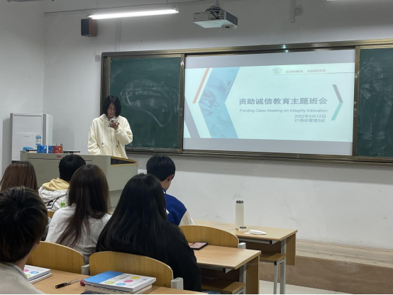 为进一步落实高校立德树人根本任务,培养大学生诚信做人、心怀感恩、自强不息、勇担责任的优秀品质引导学生全面践行社会主义核心价值观,提高受资助学生的诚信意识,培养学生的诚信理念。特此,2022年5月12日在管理学院c102教室开展了“资助诚信教育”主题班会活动。该班会在班长孙其昆的组织下,资助委员汪金玲的带领下有序开展,21酒店管理三班的同学全体参加。