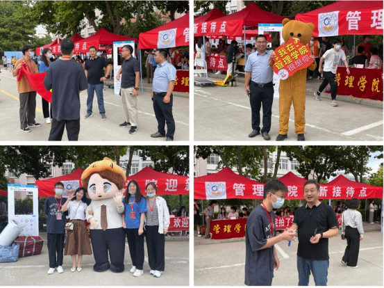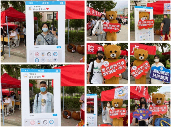 迎新报到处,大红横幅高悬,标语牌亮眼,“管理学院拍了拍你,欢迎你呀,小萌新”,亲切的话语,朋友圈式样的打卡点,迎新吉祥物欢呼着新生前来打卡拍照,迎新现场布置井然有序,流程有条不紊。学院党委书记蔡若愚、党委副书记、院长韩传龙、党委副书记张增林及新生班辅导员就疫情防控、入学手续等重要事项严格把控,周密安排,为入学报到的新生切实解决问题、提供保障。志愿者、学生党员热情服务、倾情奉献,积极协助迎新工作,展现了管院学子热情、昂扬的风采。