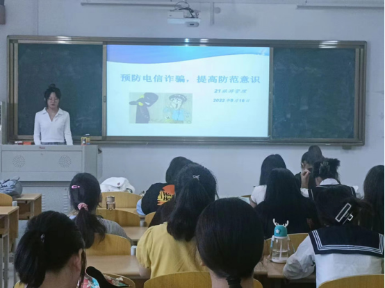又至开学季,电信网络诈骗在大学校园内呈多发高发态势,21旅游管理班于2022年9月16日上午在实训楼C113教室开展了“预防电信诈骗,筑牢安全防线”主题班会。该班会由辅导员徐蒙主持,班长张孟组织,全班同学参与。