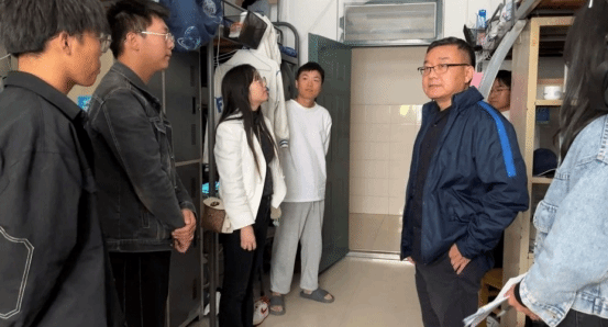 走访过程中,蔡若愚和孙杉仔细检查学生寝室门窗及电器设备的安全,对存在的安全隐患及时排查,和相应负责人提出整改。孙杉特别叮嘱同学们要遵守学校学院相关管理制度,严禁使用违规电器,增强寝室环境卫生意识,共同营造良好的寝室卫生环境。同时,面对国庆假期返校的学生们,蔡若愚向同学们再次传达了疫情防控的重要性,积极配合学校做好防护工作,并与同学们就学业情况、生活情况进行了深入交流。同时对同学们提出期望:希望大家珍惜时光,充分利用课余时间参加有益于身心健康的活动,勉励同学们扎实学好专业知识,在专业领域有所发展,有所收获。也认真询问了同学们的生活情况和饮食起居,嘱咐同学们要规律作息,保持身体健康。