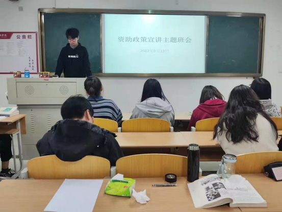 为了宣传国家资助政策,不让任何一位同学因为家庭经济困难而失学,在2022年9月13日,21房地产开发与管理班召开了资助政策宣讲主题班会。