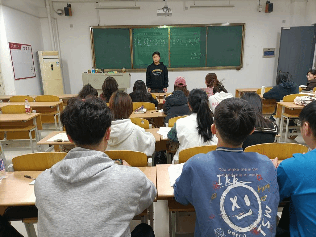为进一步提高学生识别防范传销的能力,营造抵制传销的良好校园氛围,11月25日,20级旅游管理积极响应学校关于开展校园防范传销宣传教育活动的活动方案,于实训楼C210教室召开“拒绝传销你我他,净化校园护大家”反传销主题班会。班长王炜主持班会,全班同学参与。