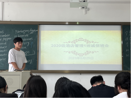 为落实“立德树人”根本任务,实施“时代新人铸魂育人工程,加强学生诚信、励志感恩教育,5月22日,20级酒店管理(对口)1班于实训楼C206开展“诚信主题班会、录制感恩视频、恳谈会”活动主题班会,活动由辅导员孙杉主持,全班同学积极参与。
