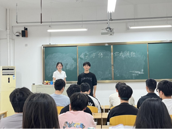 为了加强大学生的思想道德修养,树立大学生诚信为本、操守为重的信用意识和道德观念,切实提升同学们的诚信品质、法律意识和社会责任感。5月23日上午12点,在实训楼C207开展“诚实守信,你我同行”主题班会,会议由孙杉老师主持,资助委员组织,22酒店管理(对口)班的同学全体参加。