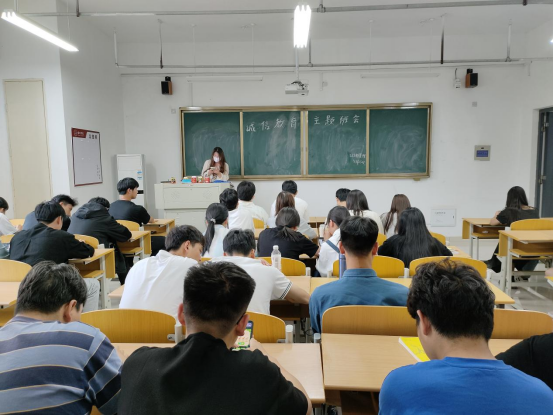 为深入学习贯彻习近平新时代中国特色社会主义思想主题教育,培育和践行社会主义核心价值观,大力弘扬诚信文化,切实提升学生的诚信品质、自律意识和社会责任感,5月23日下午,22级工程管理班于实训楼C102教室开展了“诚信教育”主题班会,本次班会由生活委员华诗雨和韦邦霖主持,全班同学参与。