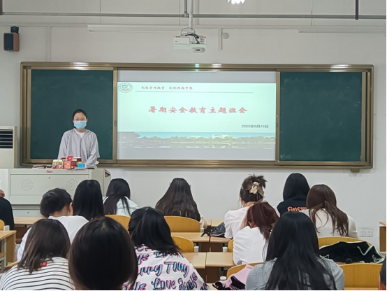王思惠分别从预防溺水、防范电信网络诈骗、交通安全、暑期社会实践安全等方面强调了暑期需要重点注意的安全事项,以实际案例对学生进行了警示教育。重点提醒暑期需要留校的同学们不要私自在外留宿;随着天气的炎热,严禁在寝室里使用蚊香等容易引发火灾的物品,提醒学生切实提高安全防范能力。