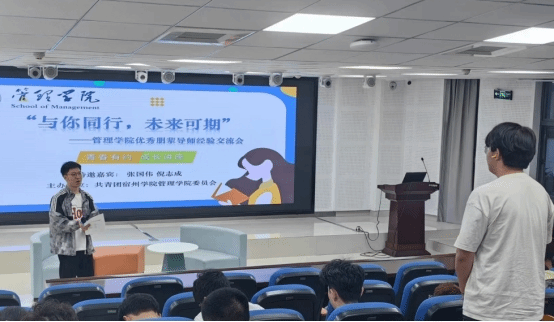为进一步加强学院学风建设,营造良好的学习氛围,充分发挥优秀毕业生的榜样引领作用,帮助同学们更好地明确学习目标、明晰未来方向,5月19日晚上,管理学院于实训楼C103举办了青年大讲堂暨第二十期《青春有约》座谈会——与你同行,未来可期,本期特别邀请张国伟、倪志成两位优秀学长来向同学们分享他们的考研、考公经验并交流自己的成长心得。座谈会由刘红艳、吴霞两位学生代表主持。