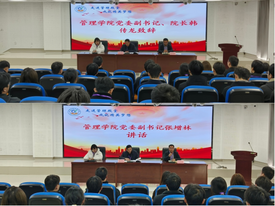 为进一步加强学生组织建设,推进学院民主管理,引领青年学生成长成才,11月27日中午,管理学院第六次学生代表大会于实训楼C103会议室举行。学院党委副书记、院长韩传龙,党委副书记、纪委书记张增林以及来自各班级、学生会、社团所组成的50名正式代表参会。大会由学院团委负责人巩艳艳主持。