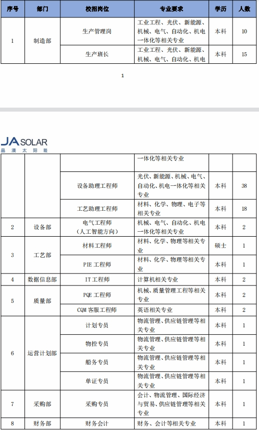 简历投递邮箱:zhoujinhua@jasolar.com简历命名格式:应聘岗位+毕业院校+专业+姓名