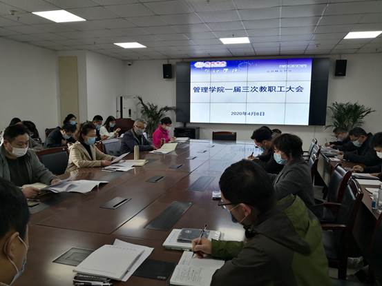 为了进一步落实教代会制度,在抗击疫情非常时期,管理学院第一届教职工大会第三次会议于2020年4月8日下午,在实习实训楼C301会议室隆重召开。院长吴玲、副院长韩传龙、党总支副书王永宁以及全体教职工参加会议,会议由王永宁主持。