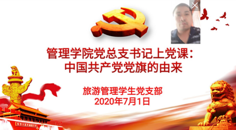 为了让学生党员充分理解党旗的由来和含义,牢记共产党人的历史使命,7月1日管理学院党总支书记为旅游管理学生党支部上党课——中国共产党党旗的由来。党总支书记刘大为主讲,支部书记陈鹏主持,支部全体学生党员参加。