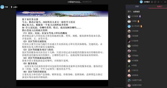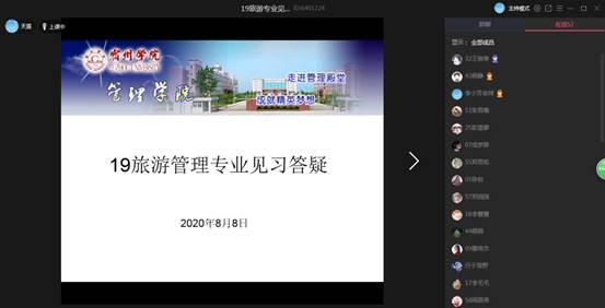 为提升本次专业见习活动的质量,旅游管理教研室反复多次研讨,协商活动方案和活动细节,并通过线上QQ群课堂开展了19旅游管理专业见习布置会。同学们在专业见习前,与指导教师深入沟通,结合专业兴趣及相关课程提供了个人专业见习的整体计划,同时见习指导老师李小芳进行了专业见习前的线上答疑,为学生更有针对性的实施专业见习进行了详细指导。为了保证专业见习的顺利开展,李小芳给同学们明确了具体任务和要求。