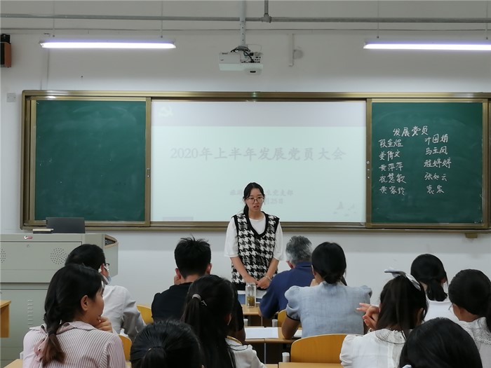 2020年9月25日下午3:00,旅游管理学生党支部于实训楼C104召开2020年上半年发展党员大会。会议由旅游管理学生党支部书记陈鹏主持,党总支副书记王永宁、部分教师及支部全体党员参加。
