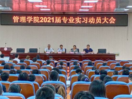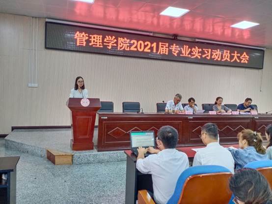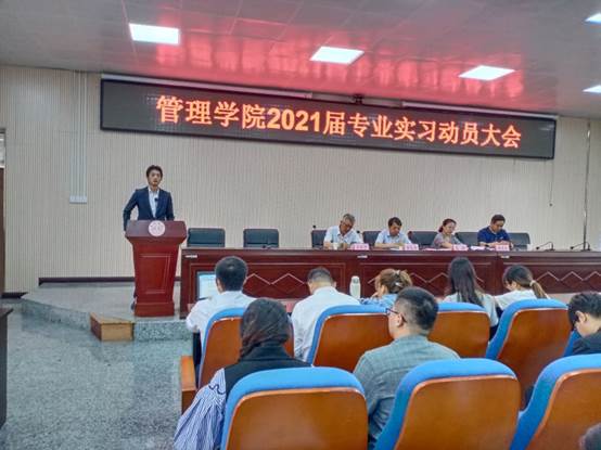 为进一步提高实习质量,确保2021届专业实习顺利进行,管理学院于2020年9月28日下午,在逸夫楼第二会议室举行2021届实习动员大会,出席此次大会有院长吴玲、副院长韩传龙、党总支书记刘大为、党总支副书记王永宁、实习指导小组成员、实习班级辅导员以及17级实习班级全体学生,大会由王永宁主持。