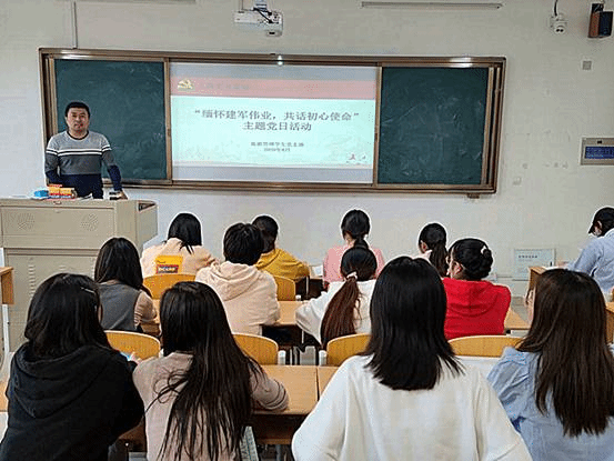 为庆祝中国人民解放军建军93周年,弘扬八一精神,发扬光荣传统和优良作风,8月31日下午1:30,旅游管理学生党支部在实训楼C104开展“缅怀建军伟业,共话初心使命”主题党日活动。支部书记陈鹏主讲,支部全体学生党员参加。