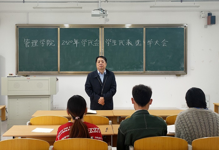 为贯彻落实学代会学生代表的选举工作,切实解决学生问题。11月2日中午12:00,管理学院于实训楼C105召开2020年学生代表选举大会。此次会议由党总支书记刘大为主持,团总支书记高歌、学生代表候选人及各班班委参加。