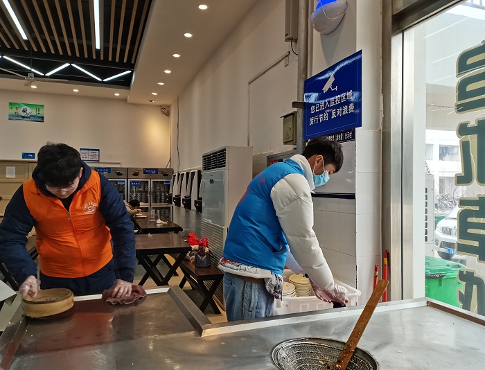 活动开始前,志愿者们先于食堂门口集合,并在领取活动服装后跟随各组负责人前往一食堂、三食堂两个地点分别开展活动。在活动中,志愿者们充分发扬志愿精神,有的主动在食堂门帮助服务人员收取餐盘,有的则为食堂认真整理桌椅、擦拭餐桌,他们忙碌的身影不仅彰显了当代大学生的社会责任感与乐于奉献意识,更展现了学院优秀的志愿风采。最后,刘大为表示,学院对此类志愿服务活动予以高度重视,他希望各位志愿者能够在实践的基础上发挥宣传教育作用,促使光盘行动得以在各个班级中进一步开展。