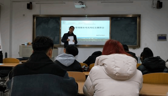 为进一步维护考风考纪,打造公平公正的考试环境,营造诚信校园,倡导同学们”端正考风、严肃考纪、文明答题、诚信应考”。1718物业管理、19房地产开发与管理、19物业管理、20物业管理班级于12月24至12月28日陆续召开期末考风考纪主题班会。本次会议由辅导员徐敬亮主持,各班委配合组织,班级同学积极参与。