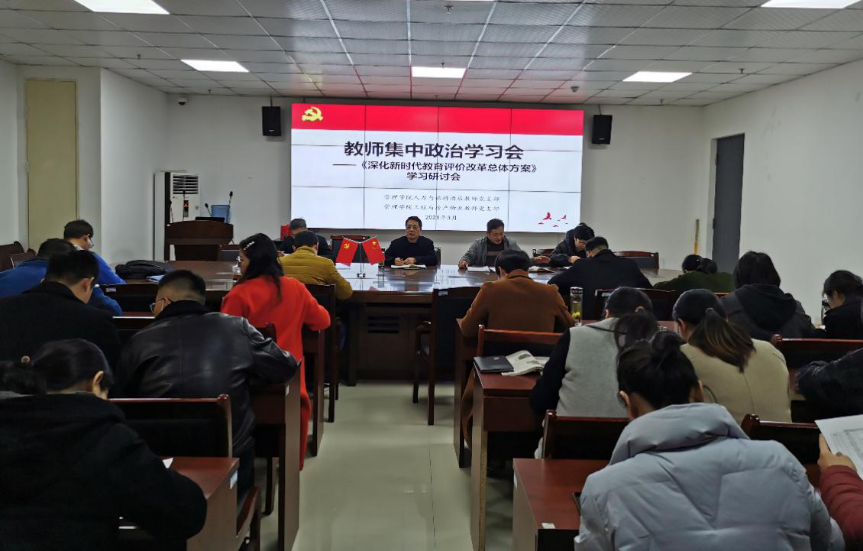 为深入学习《深化新时代教育评价改革总体方案》,贯彻落实文件精神,切实做好教育教学工作,管理学院教师支部于3月17日下午召开教师集中政治学习会,传达并学习文件精神。