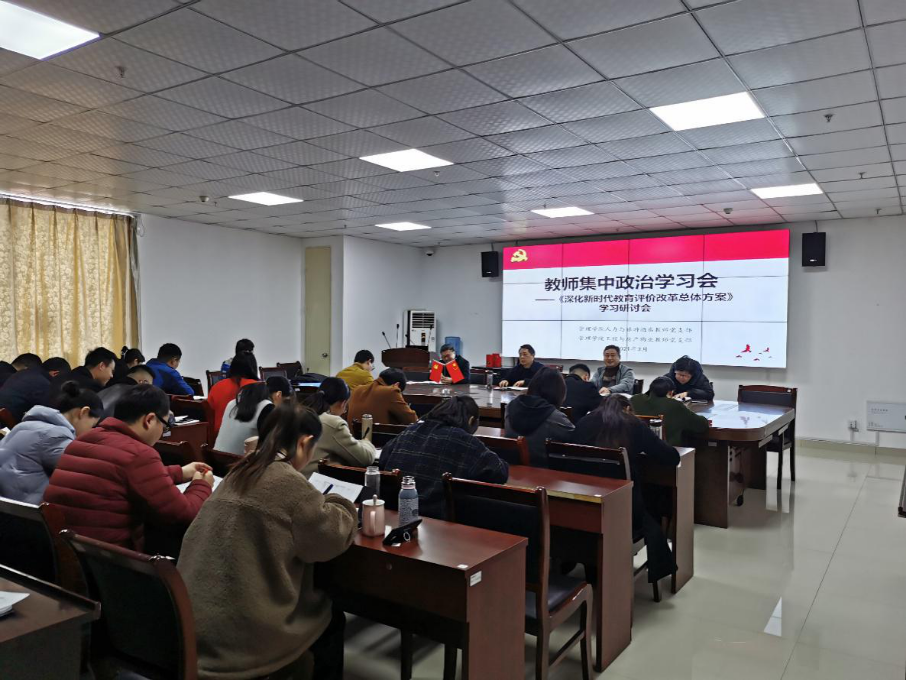 会上,教师支部书记王淑霞领学了《深化新时代教育评价改革总体方案》,教师支部书记王元宝并就方案中的背景、目标 、重点任务作了详细的解读。党委书记刘大为参加学习会,要求全体教师认真学习方案,结合实际工作,坚持师德师风为第一标准,努力做好各项工作,营造新背景新时期下的校园良好教育环境。