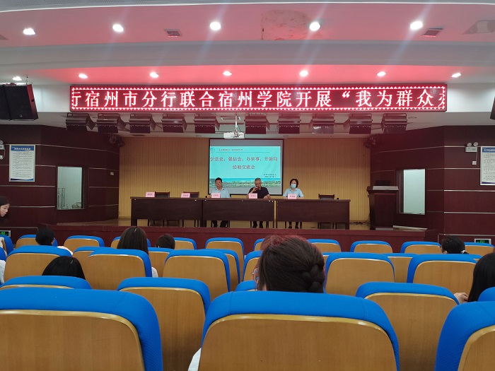 为深入推进党史学习教育,加强党史学习的经验交流,进一步提升党史学习教育开展的质量和实效,6月9日,管理学院于工科楼招聘大厅召开学党史、强信念、办实事、开新局经验交流会。学院党委副书记王永宁主持会议,宿州市建行分行副行长汪培训、个人金融部副总经理田秀梅、业务经理张丽丽出席,学院各班级班长、团支书、助学贷款学生参加。