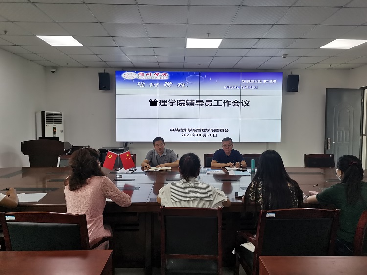 为加强教学管理,规范辅导员队伍建设,确保新学期开学各项工作有序开展,8月26日,管理学院于实训楼C301教室召开辅导员工作会议,会议由党委书记蔡若愚主持召开,院长韩传龙及班级辅导员参加。