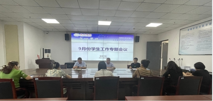 为全面迎接新学期,切实落实学生工作事务,推进辅导员工作做实、做细,管理学院于9月18日下午在实训楼C301会议室召开9月份学生工作专题会议,学院党委书记蔡若愚主持会议,院长韩传龙、党委副书记张增林及各班辅导员参加会议。