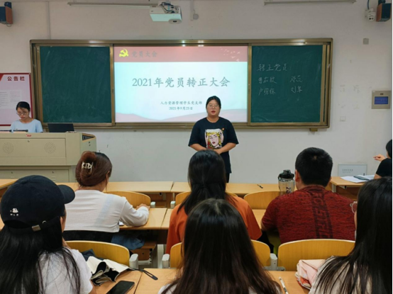 为进一步做好党员发展工作,完善基层党组织建设,提高党员队伍战斗力,9月25日中午12:30,学院人力资源管理学生党支部在实训楼C111召开2021年党员转正大会。本次会议由支部书记王思惠主持,部分教师及支部全体学生党员参加。