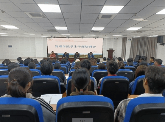 为进一步加强学院学生干部队伍建设,完善学生干部内部体系结构,提高学生干部的学习能力与工作方法。10月22日下午,管理学院于实训楼C103会议室召开学生干部培训会。学院党委书记蔡若愚、院长韩传龙、党委副书记张增林、副院长宋徽、学院各科室主要负责人、各班级辅导员及学院学生会全体成员参加会议,会议由张增林主持。