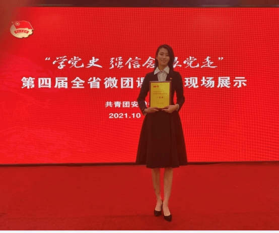 为深入学习贯彻习近平新时代中国特色社会主义思想,扎实推进党史学习教育深入开展,10月25日,“学党史,强信念,跟党走”第四届全省微团课现场评选活动在合肥成功举办。来自管理学院的盛典同学在本次微团课评选展示中荣获一等奖。