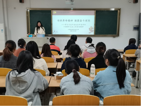 为了学习习近平在纪念辛亥革命110周年大会上的讲话精神,工程管理学生党支部于10月20日下午13:30在实训楼C211召开“传承革命精神,凝聚奋斗理想”集中政治学习会。全体支部党员参加,会议由孙杉主持。