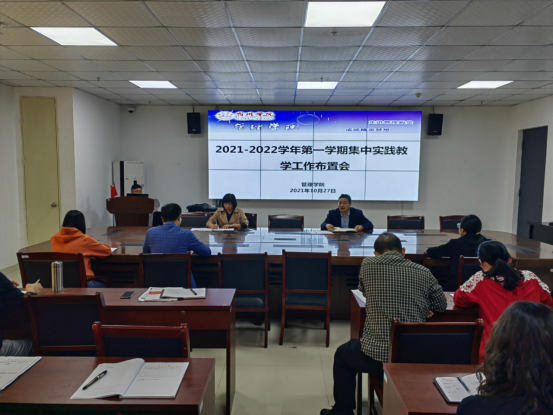 为加强实践教学工作管理,确保实践教学的有序开展,2021年10月27日下午,管理学院在实训楼C301召开了集中实践教学工作布置会,管理学院院长韩传龙、副院长宋徽、各教研室主任及实习实训中心全体人员参加会议,会议由韩传龙主持。