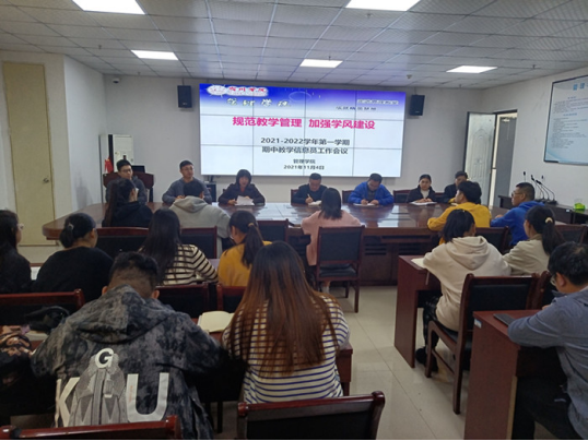 为加强教学管理,确保教学质量监控和信息反馈按照校、院相关文件精神及工作计划安排,管理学院于11月4日中午1点在实习实训楼C楼召开2021-2022学年第一学期期中教学信息员会议。本次会议分两组同步在C301、C502会议室进行,会议主题均为“规范教学管理,加强学风建设”。
