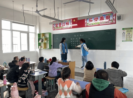 活动期间,志愿者们首先对孩子们进行自我介绍,初步认识,随后正式进入教学。各班级教学工作有所不同,从窗外走过,我们能听到整齐响亮的语文背诵、能看到积极回答数学问题的小同学们、能听到他们饱含深情歌唱国歌,也能看到孩子们笔下栩栩如生的小动物……志愿者们对小同学们进行了生动有趣的教学,鼓励他们积极回答问题,耐心对待孩子们,并为孩子们准备了小礼物作为奖励。最后,下课铃响起,为此次支教活动画上了圆满的句号。