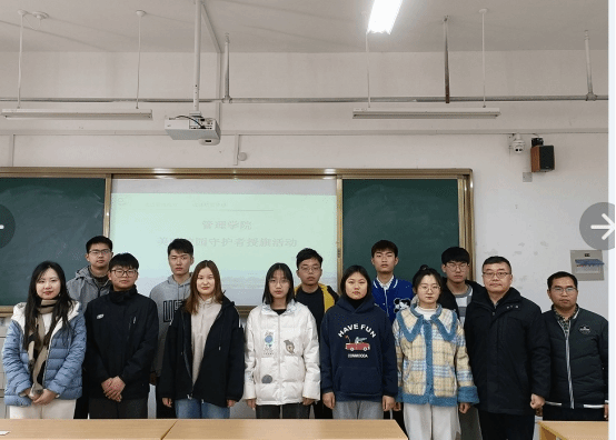 为加强班级文化建设,提高学生团结意识,增强班级凝聚力,12月31日中午,管理学院于实训楼C105举行“美丽校园守护者”活动授旗仪式。学院党委书记蔡若愚,党委副书记张增林以及大一各班级班长参加活动,本次仪式由管理学院团委负责人孙杉主持。