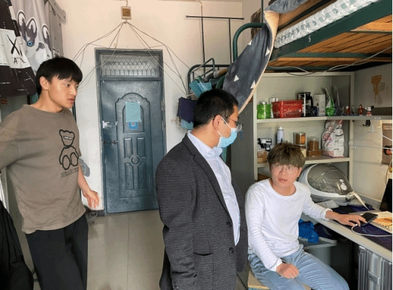 进入寝室,张增林指出夏天应当多开门多通风,不要老是在寝室内坐着学习,应该时不时出去走一走,在如此疫情防控关头不要感冒发烧。同时,强调宿舍安全的重要性,还不忘提醒学生安全意识不可松懈,并就最近新出现的新冠案例向同学们强调,防范意识不可松懈,针对目前的现状,要积极配合学院,遵守纪律,不要擅自出市,同学们也对于书记提出的种种要求和建议表示赞同。