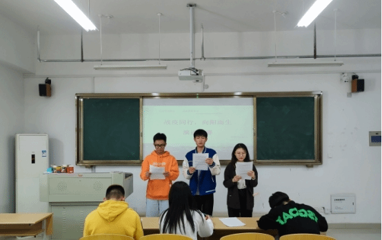 为增强青年学生的责任感和使命感,提升打赢疫情防控阻击战的信心,引导学生做一名有理想、有责任、有担当的青年,给同学们提供一个展示自我风采的空间,宣传疫情防控下的励志故事,传递青春正能量,5月22日中午,管理学院于实训楼C105教室举办“战疫同行,向阳而生”主题演讲比赛。